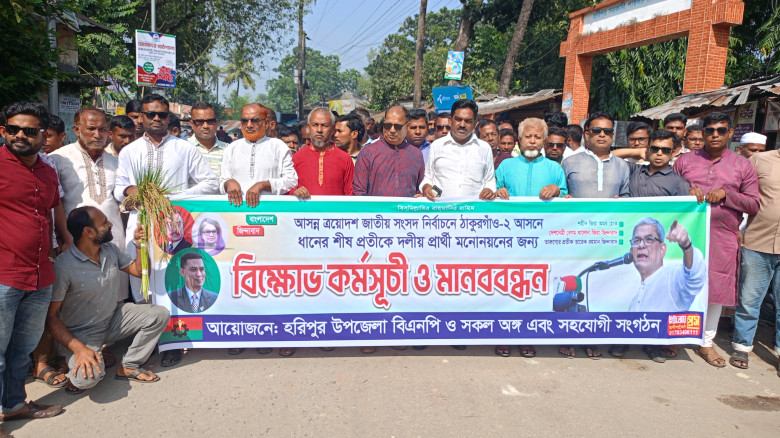 ঠাকুরগাঁও-২ আসনে ধানের শীষের প্রার্থী দাবিতে হরিপুরে বিক্ষোভ ও মানববন্ধন